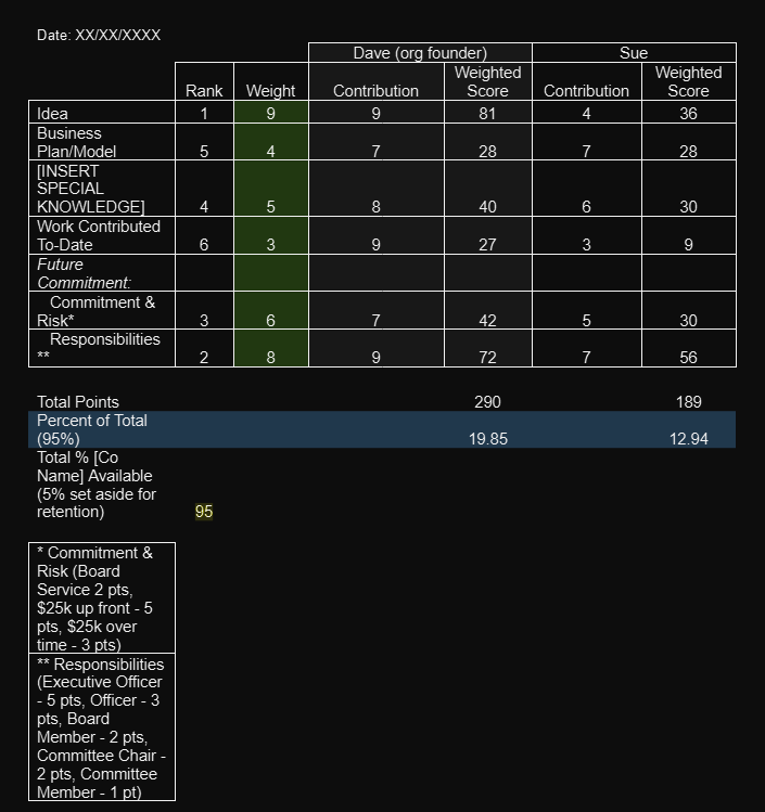 Years ago, Professor Frank Demmler, a Teaching Professor of Entrepreneurship at Carnegie Mellon University, introduced the Founders' Pie Calculator, also referred to as the Startup Equity Matrix (SEM).